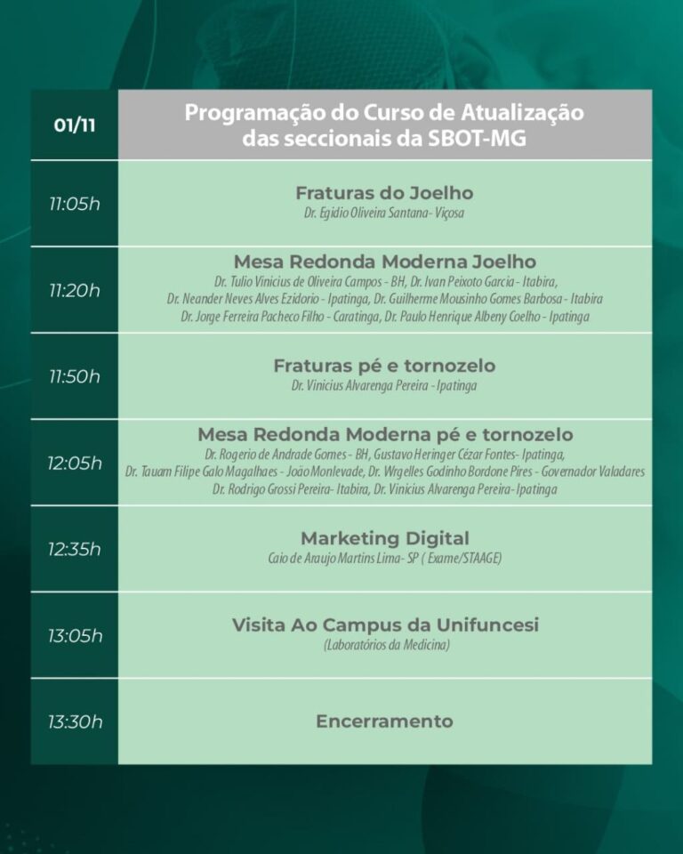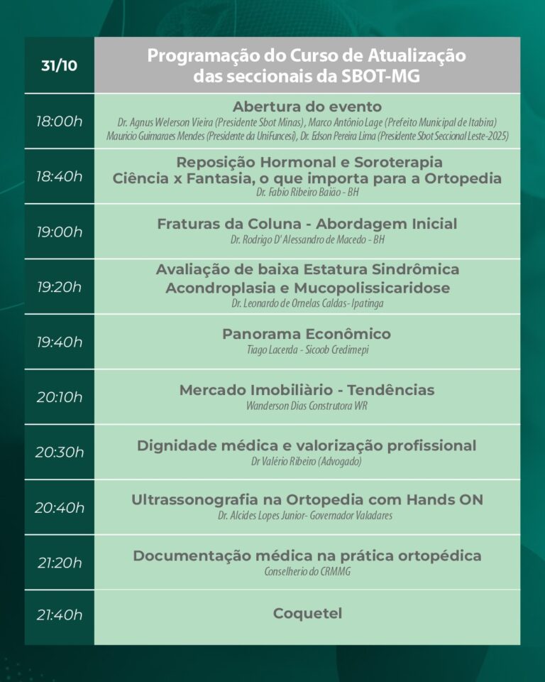 Inscrições abertas: Membros SBOT: Gratuito Acadêmicos: R$ 50,00 Médicos e outros profissionais: R$ 100,00 Vagas limitadas!